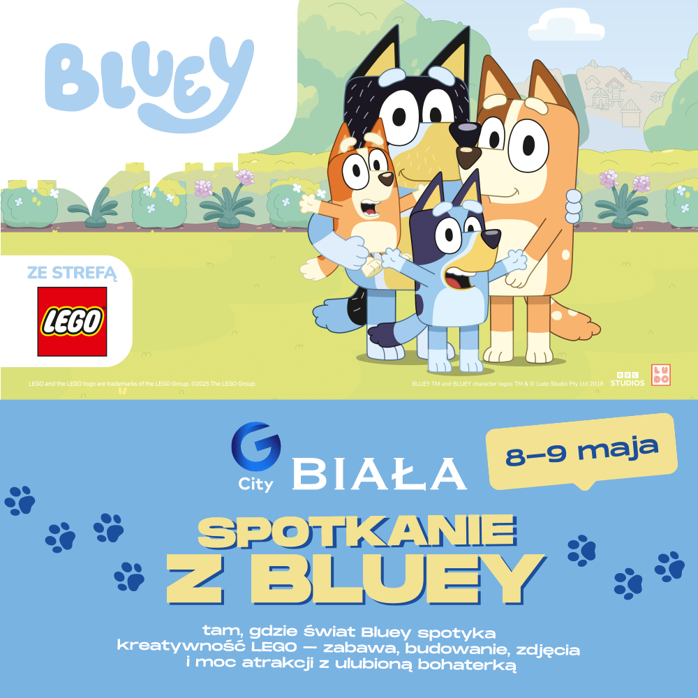 🩵💙Weekend pełen kreatywnej zabawy z Bluey i LEGO®🐶 Już 8–9 maja w godzinach 11:00–19:00 zapraszamy wszystkie rodziny do Centrum Handlowego G City Biała na wyjątkowe wydarzenie pełne radości, śmiechu i kreatywnej zabawy! Przed Wami Bluey LEGO®.