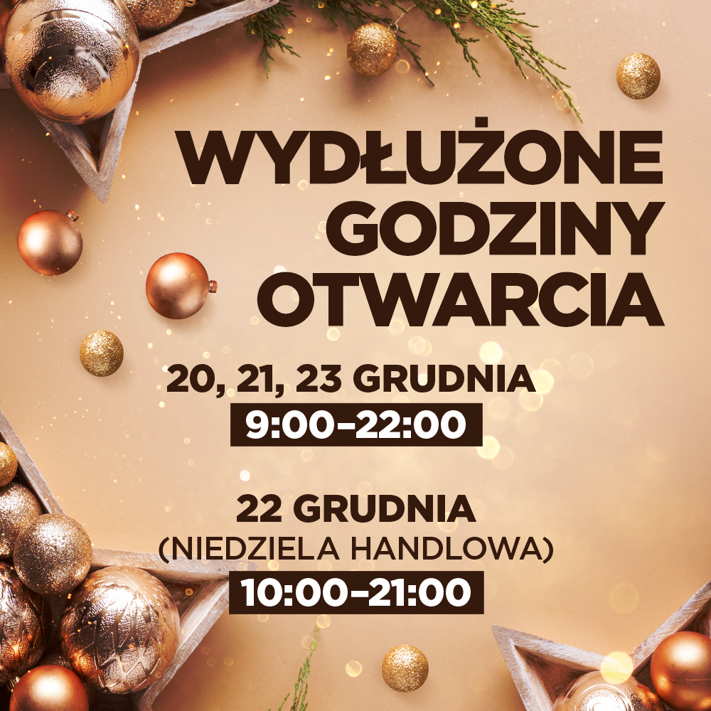 • 22 grudnia (niedziela handlowa): 10:00–21:00