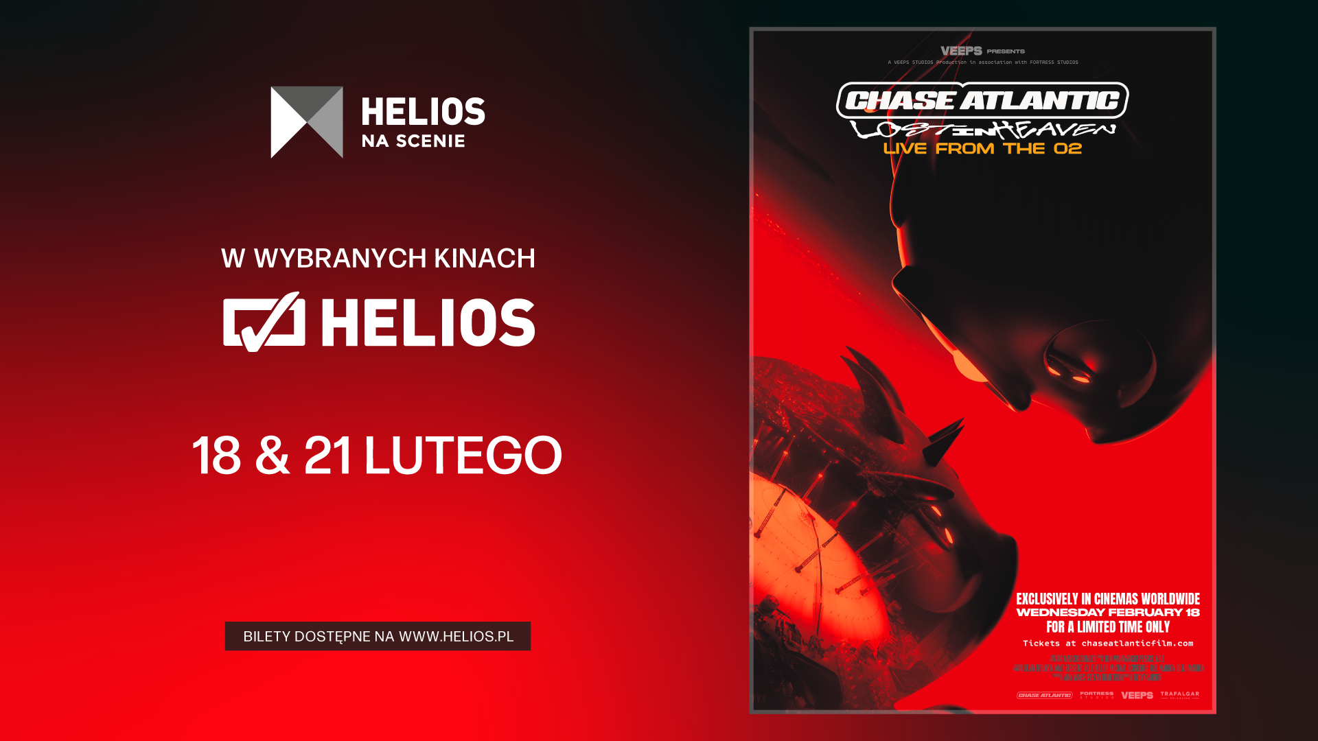 Już 18 i 21 lutego 2026 roku kino Helios Biała w Białymstoku zaprasza na wyjątkowy pokaz filmowy z cyklu Helios na Scenie – „Chase Atlantic: Lost In Heaven”. To pełnometrażowy, immersyjny film koncertowy, który przenosi widzów na finałowy występ legendarnej trasy Lost In Heaven, zrealizowany w londyńskiej O2 Arenie. W kinie zobaczymy intensywne muzyczne doświadczenie z energią australijskiego trio Chase Atlantic – Mitchela Cave’a, Christiana Anthony’ego i Clintona Cave’a.