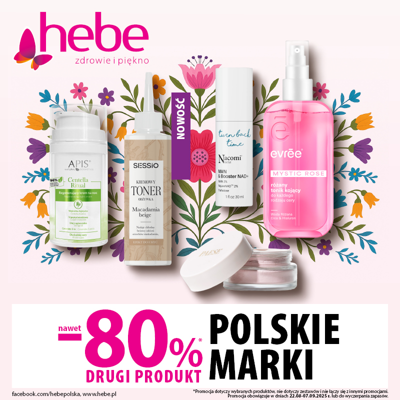 Odkryj siłę polskich marek w Hebe!💖 Tylko teraz zyskasz nawet -80% na drugi produkt na wybrane kosmetyki.