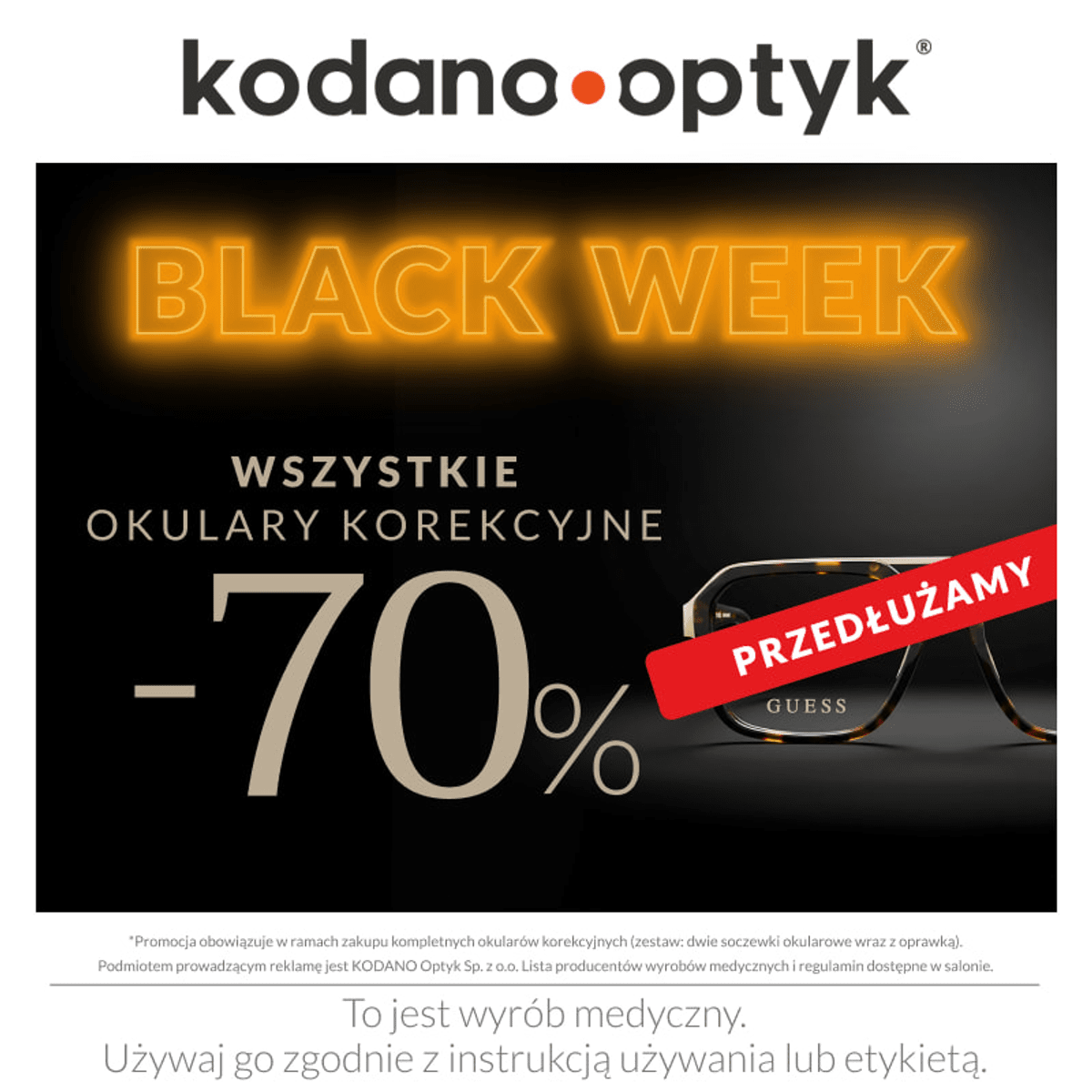 Spóźniłeś się? Bez obaw! W KODANO Optyk przedłużamy Black Week i wszystkie okulary korekcyjne kupisz aż 70% taniej!